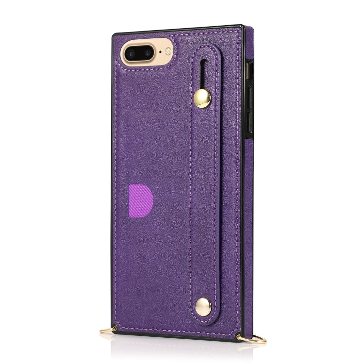 Funda para iPhone 8 Plus / 7 Plus con Correa de Muñeca PU y TPU, Soporte, Ranura para Tarjeta (Púrpura)