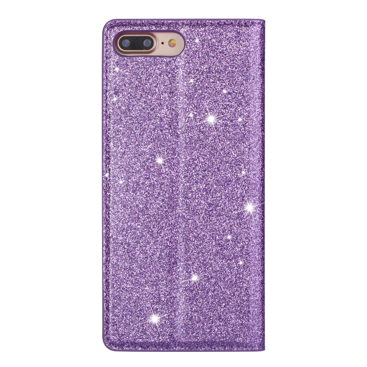 Estuche de Cuero iPhone 8 Plus 7 Plus Tapa Horizontal Magnética Ultradelgada Purpurina Soporte Ranuras para Tarjetas (Púrpura)