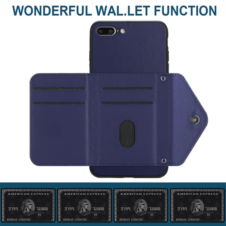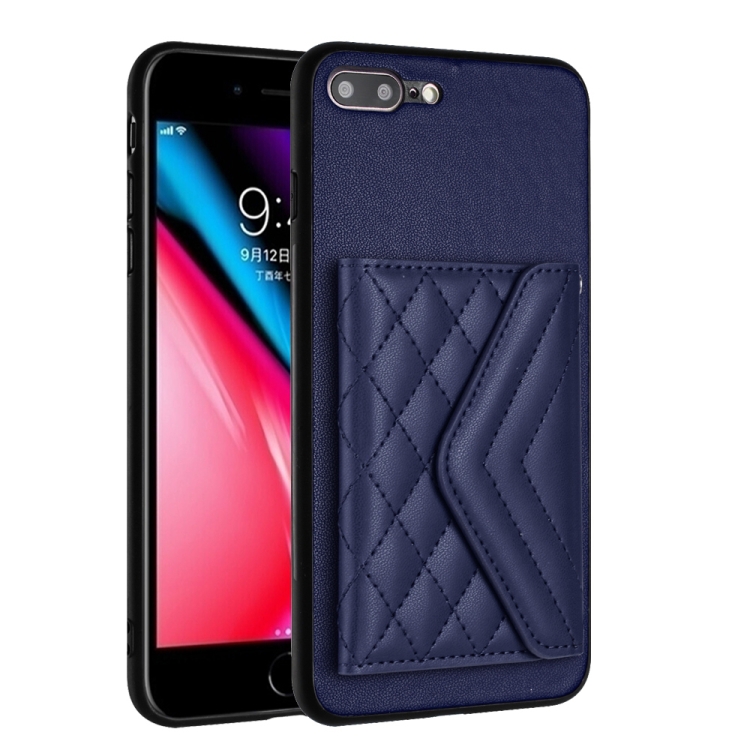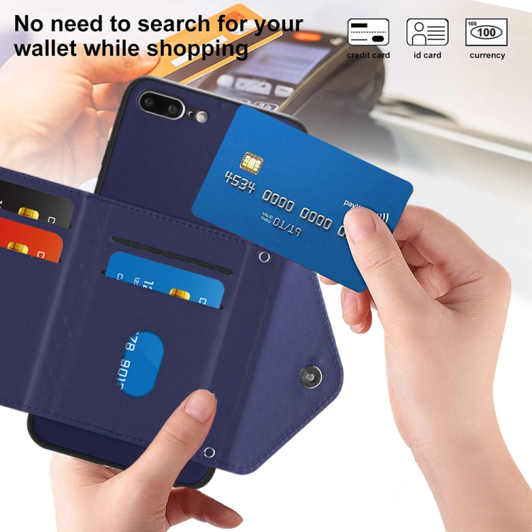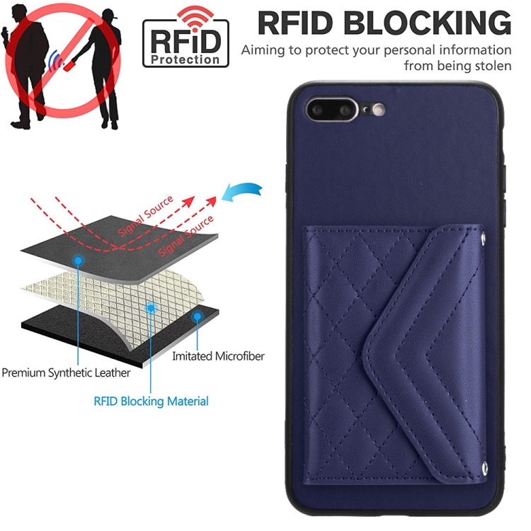 Funda para Teléfono iPhone 8 Plus/7 Plus Rfid con Bolsa para Tarjetas Textura Rómbica Cordón Largo (Púrpura Oscuro)