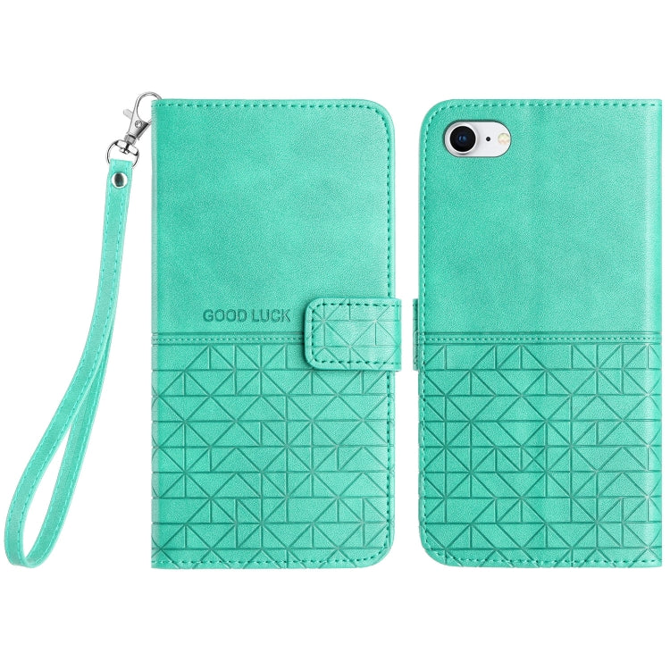 Funda para Teléfono iPhone SE 2022/2020/8/7 Cuero Textura Rómbica Cordón (Verde)