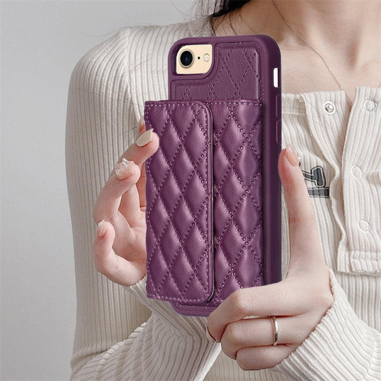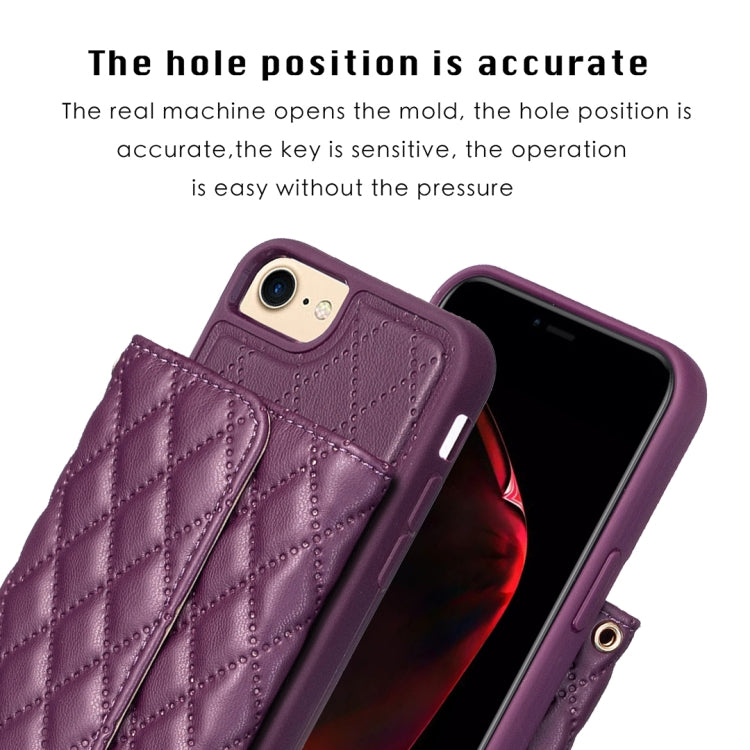 For iPhone SE 2022 / SE 2020 / 7 / 8 Horizontal Wallet Rhombic Leather Phone Case (Dark Purple)