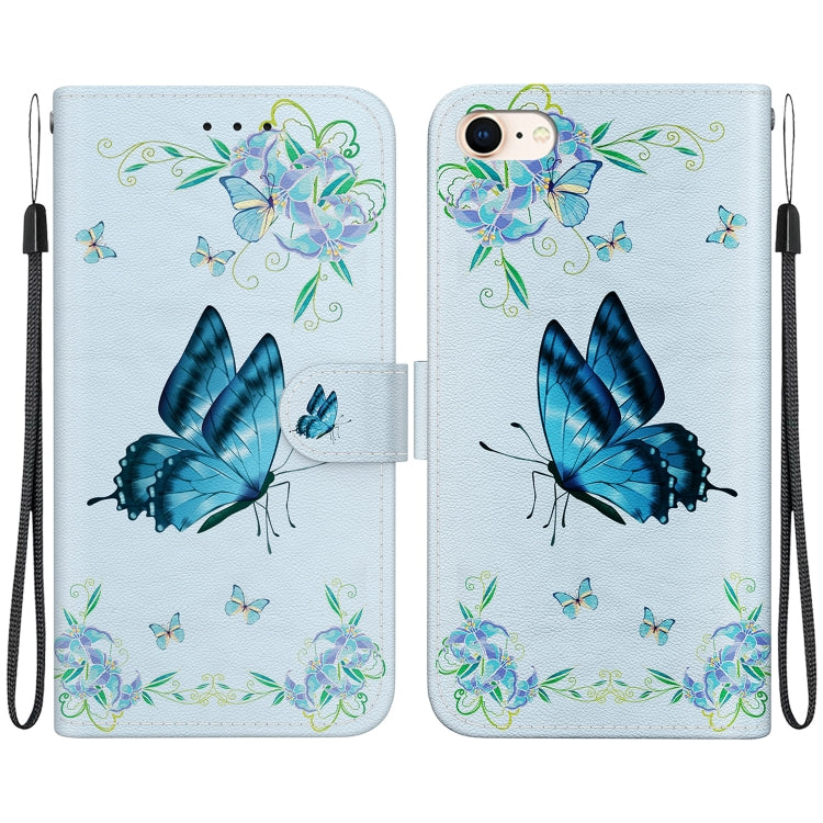 Funda para Teléfono iPhone SE 2022/SE 2020 Cuero Dibujo Coloreado Textura de Cristal (Pensamientos Azules)