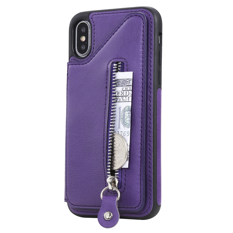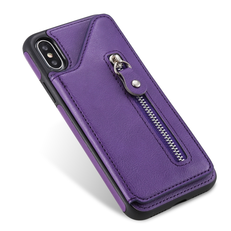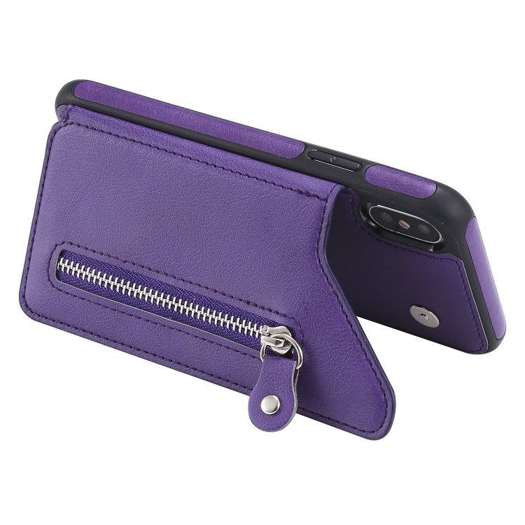 Funda Protectora para iPhone X Doble Hebilla Cremallera a Prueba de Golpes (Púrpura)