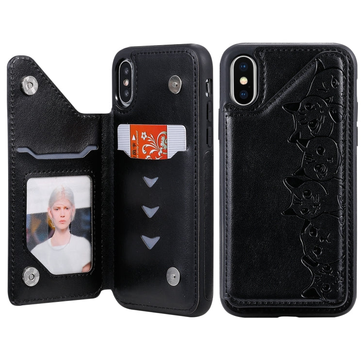 Funda Protectora Six Cats para iPhone X con Patrón En Relieve, Soporte, Ranuras para Tarjetas y Marco de Fotos (Negro)