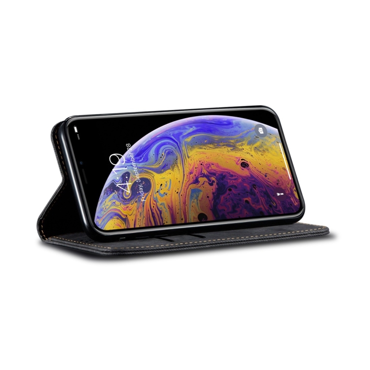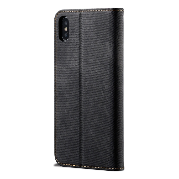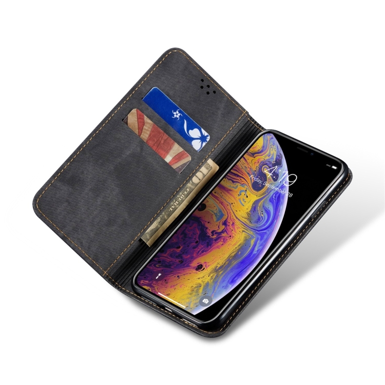 Funda para iPhone X / Xs Cuero con Tapa Horizontal Estilo Informal Textura Mezclilla Soporte Ranuras Tarjetas Billetera (Negro)