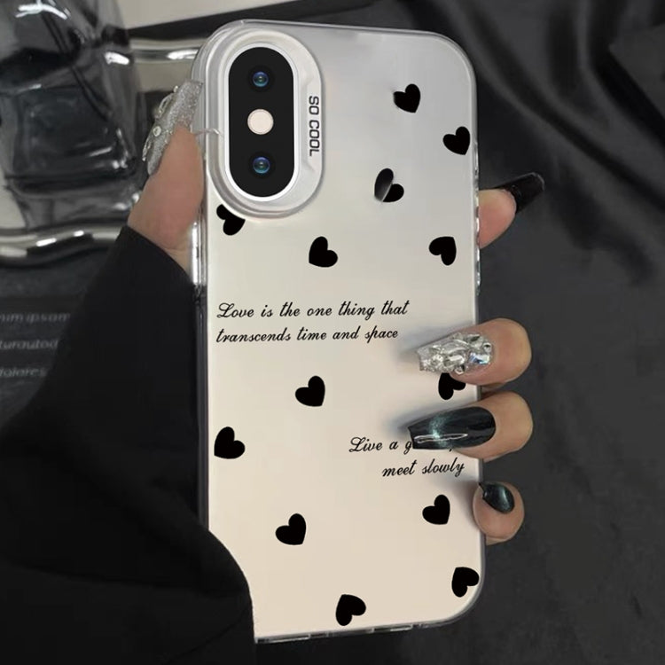 Funda híbrida para iPhone X Xs TPU con pintura plateada para PC corazones de amor blancos