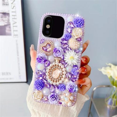 Funda para Teléfono iPhone X Xs con Incrustaciones de Diamantes y Rosas para PC (Púrpura)