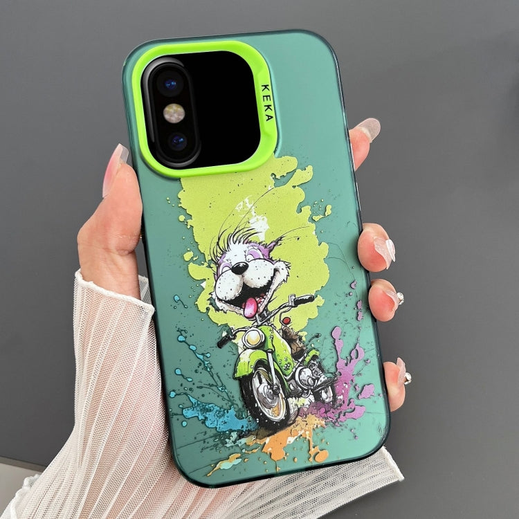 Funda para Teléfono iPhone X / Xs Imd Animal Graffiti TPU + PC Doble Cara (Perro de Motocicleta)