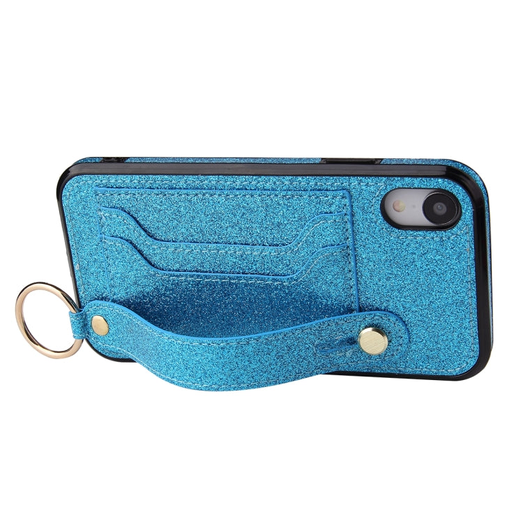 Estuche Protector para iPhone X Xs Glitter Powder PU + TPU con Soporte Ranuras Tarjetas Correa (Azul)