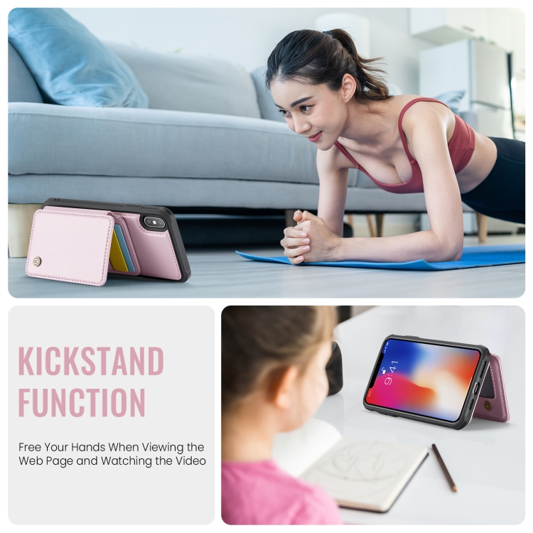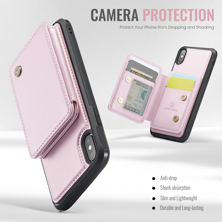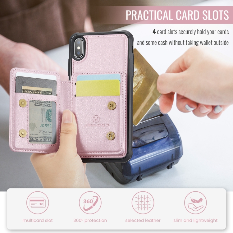 Estuche para teléfono Jeehood J05 para iPhone X Xs Cuero Rfid Estilo Magnético Empresarial (Rosa)