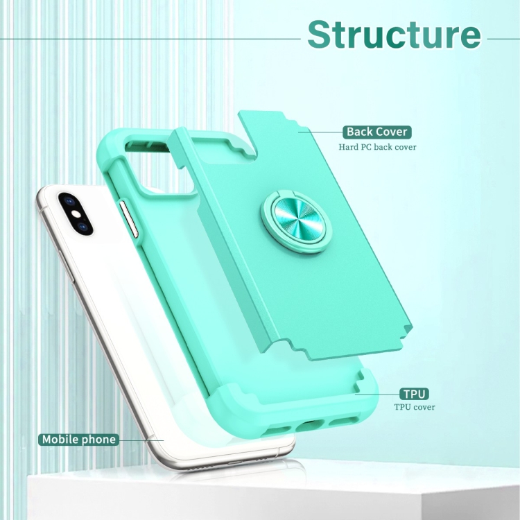 Funda Magnética para Teléfono iPhone X / Xs L2 con Soporte de Anillo Giratorio (Verde Menta)
