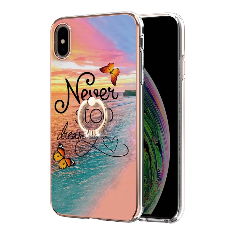 Estuche TPU para iPhone X / Xs con Patrón de Galvanoplastia Imd y Soporte para Anillo de Diamantes de Imitación (Dream Chasing Butterfly)