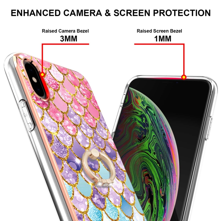 Estuche TPU para iPhone X / Xs con Patrón de Galvanoplastia IMD y Soporte para Anillo (Escamas de Colores)
