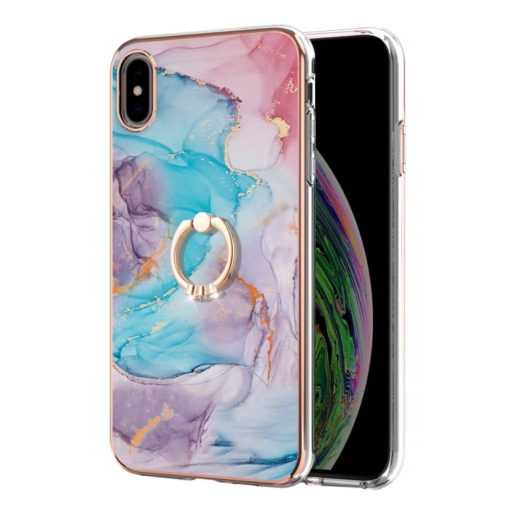 Estuche TPU para iPhone X / Xs Patrón Galvanoplastia Imd a Prueba de Golpes con Soporte Anillo Diamantes (Mármol Azul de la Vía Láctea)