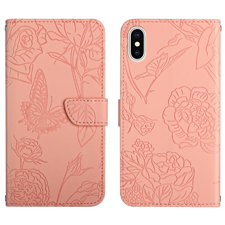 Funda para iPhone X Xs Skin Feel Butterfly Peony Cuero En Relieve (Rosa)