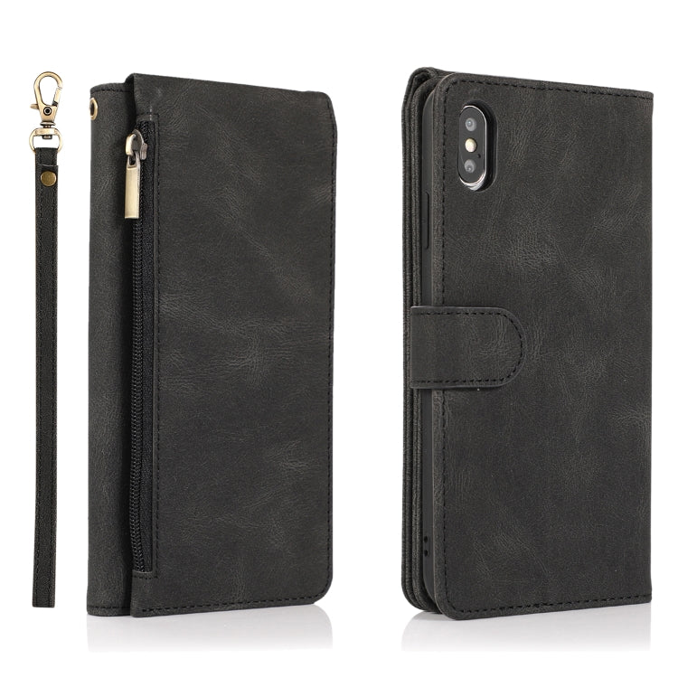 Funda para iPhone X Xs Crazy Horse Texture Zipper Wallet Bag Cuero Tapa Horizontal Soporte Ranuras Tarjetas Billetera Cordón (Negro)