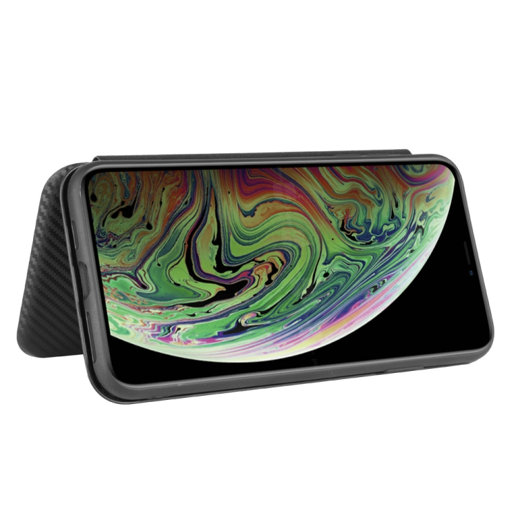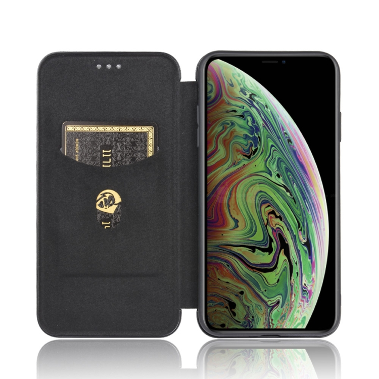 Funda para iPhone X Xs Textura Fibra de Carbono Flip Horizontal TPU PC Cuero PU Ranura Tarjeta (Negro)