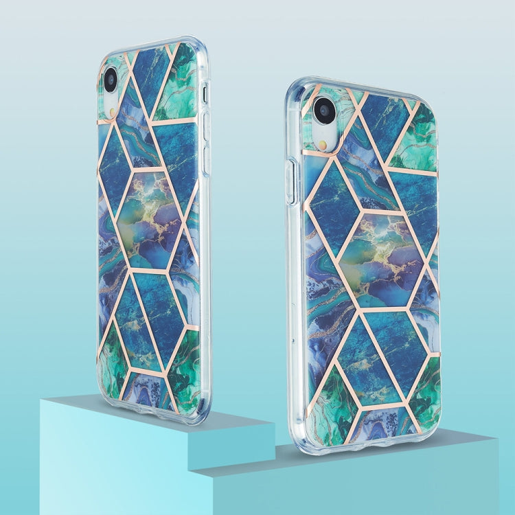 Funda Protectora TPU para iPhone Xr 3D Galvanoplastia Patrón de Mármol (Verde Oscuro)