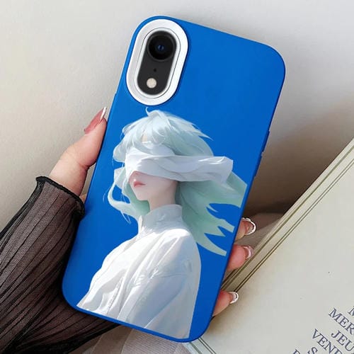 Funda híbrida para iPhone Xr Blindfold Girl PC y TPU (Azul)