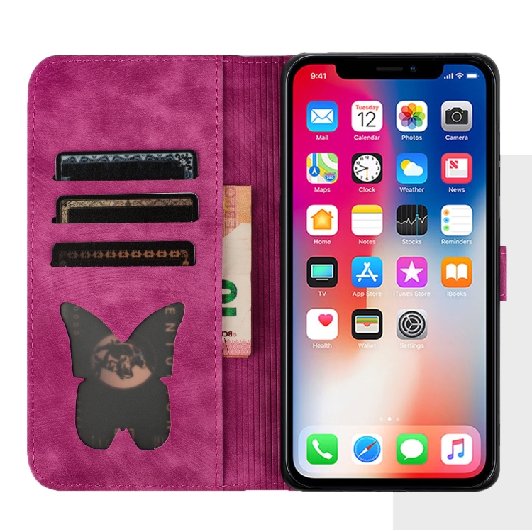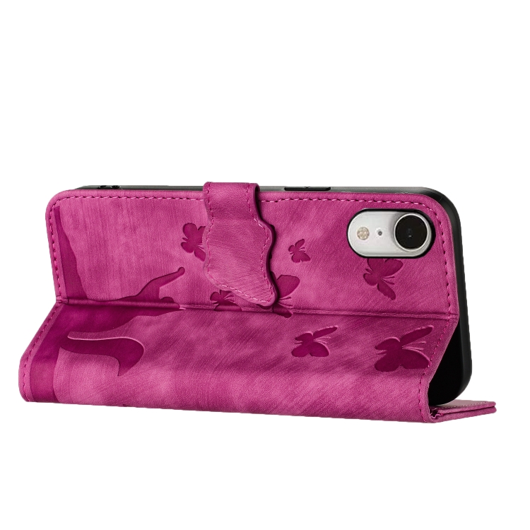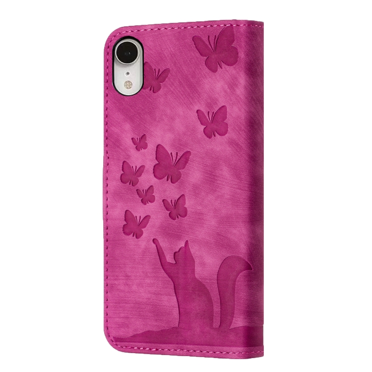 For iPhone XR Butterfly Cat Embossing Flip Leather Phone Case Cover(Pink)