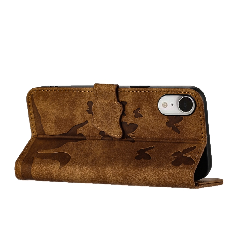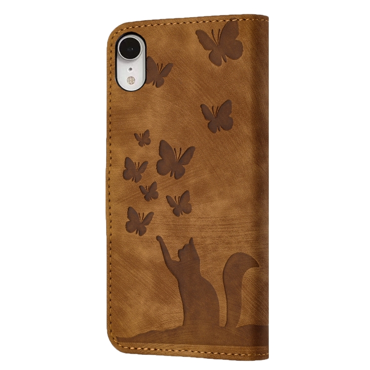 For iPhone XR Butterfly Cat Embossed Flip Leather Phone Case(Brown)