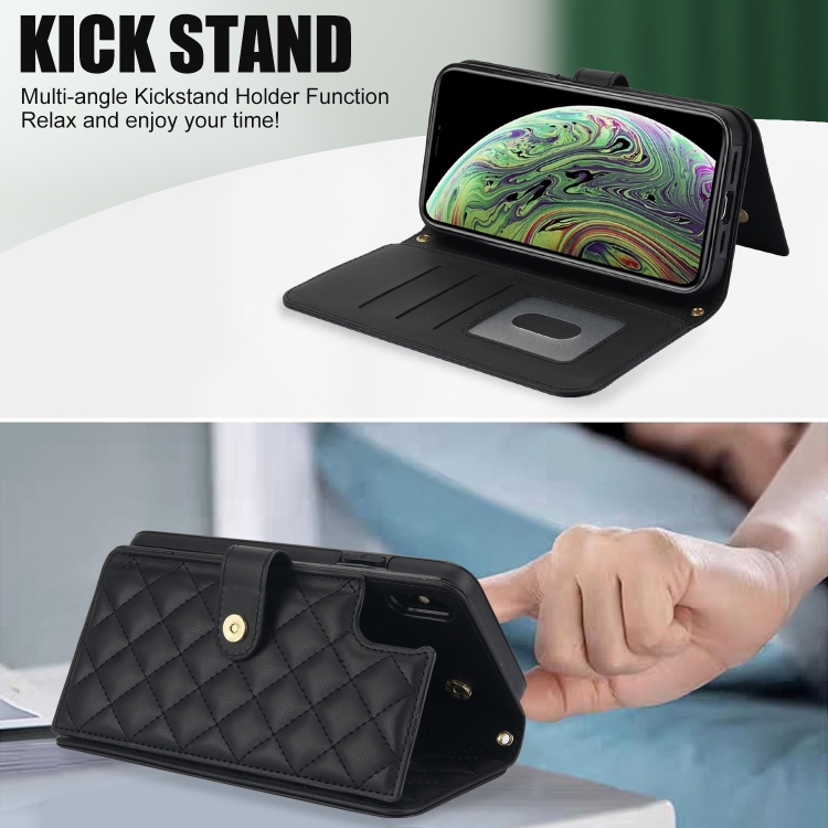 Estuche para Teléfono iPhone Xr Crossbody de Cuero Rómbico Multifunción (Negro)