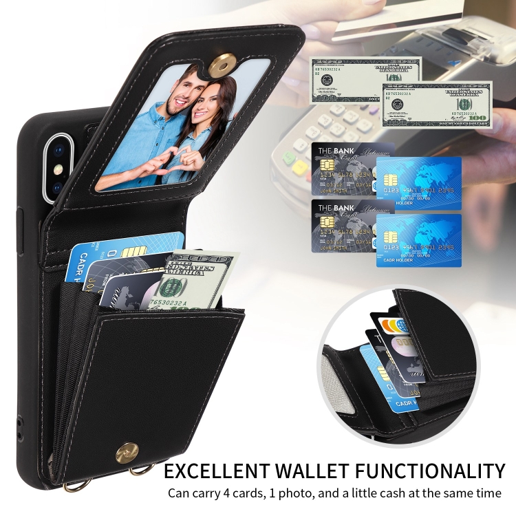 Funda de Cuero para Teléfono iPhone Xr Crossbody Lanyard Zipper Wallet (Negro)