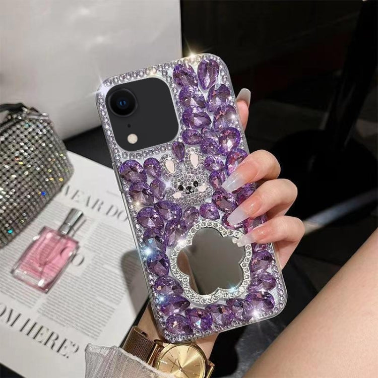 Funda para Teléfono iPhone Xr Diamond Mirror Bunny Hecha a Mano PC (Espejo Púrpura)