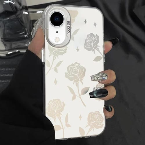 Estuche híbrido para teléfono iPhone Xr TPU con pintura plateada para PC (Blanco Rosa)