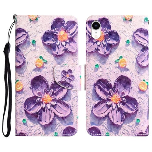 For iPhone XR Colored Drawing Leather Phone Case (Purple Flower)