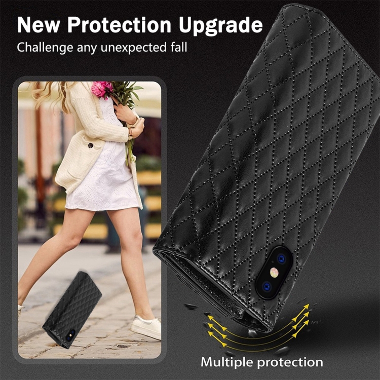 Estuche para Teléfono iPhone Xr Cuero Rómbico Billetera MultiTarjeta Cremallera (Negro)