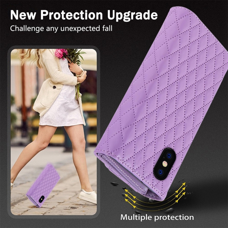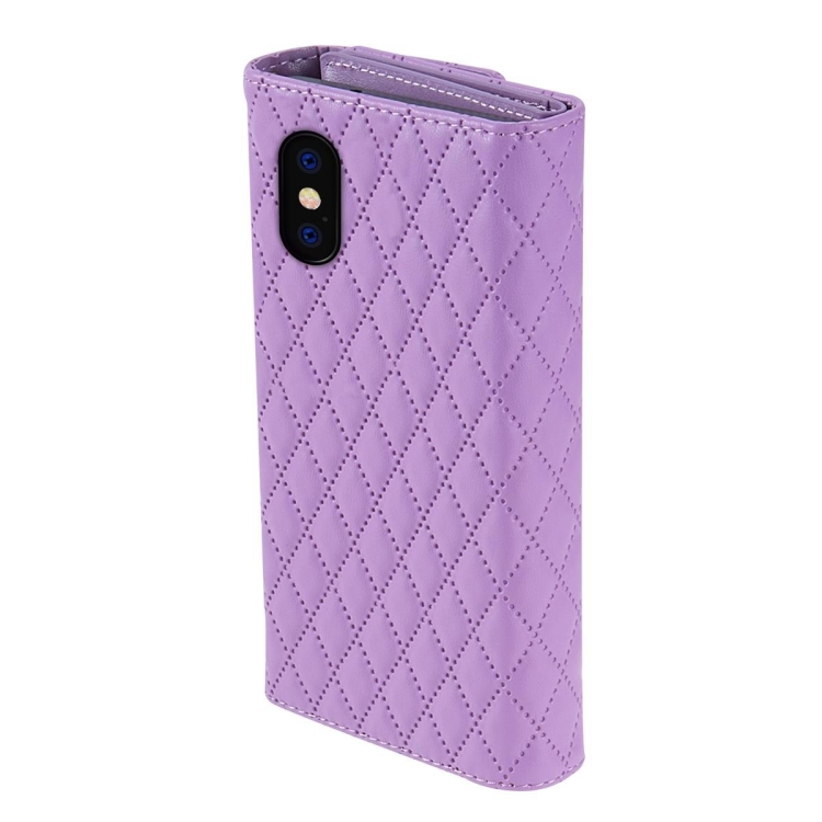 Estuche para Teléfono iPhone Xr Cuero Rómbico con Billetera MultiTarjeta y Cremallera (Púrpura)