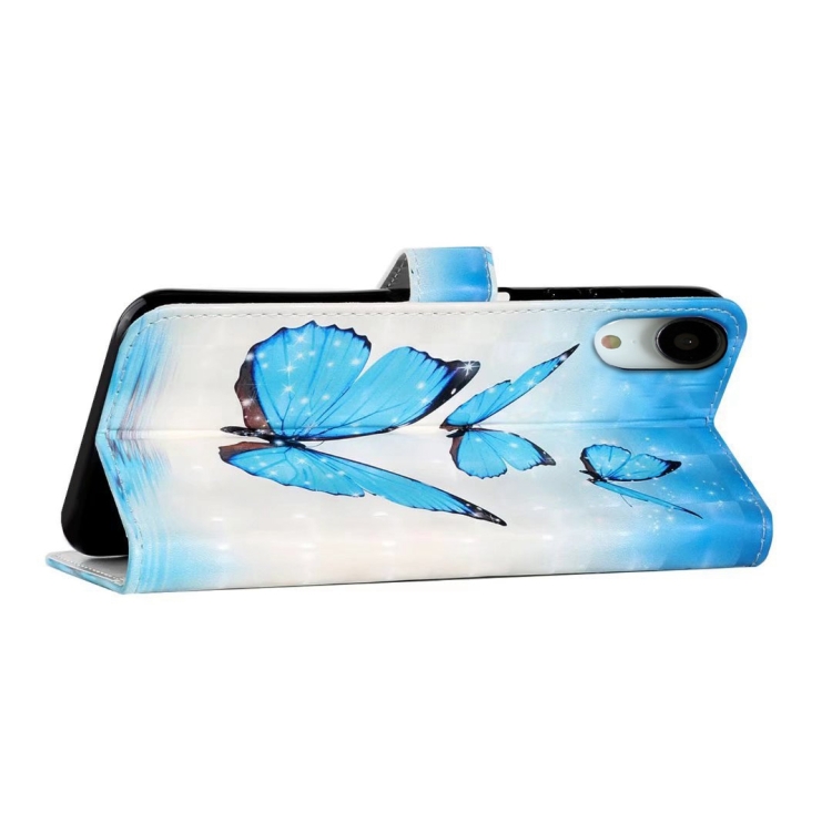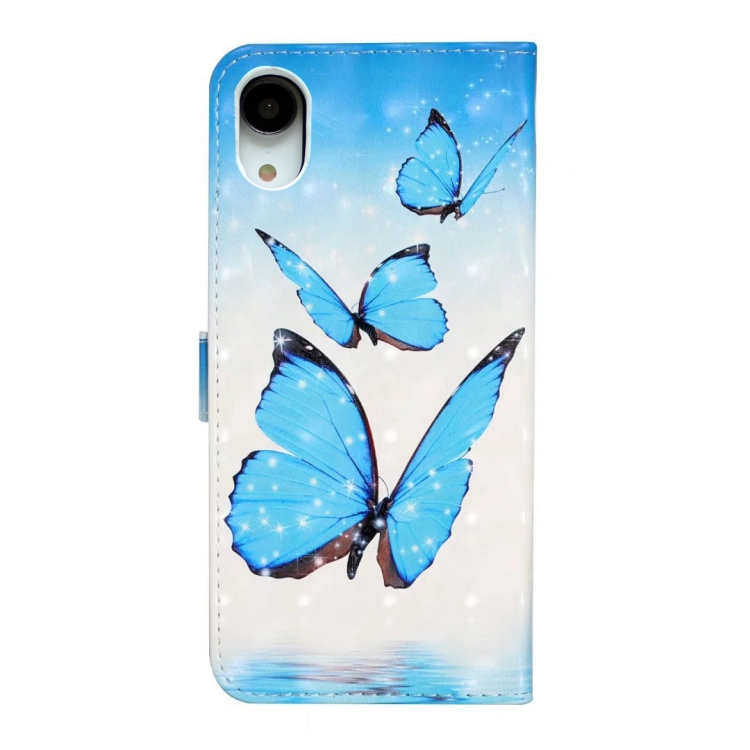 Funda de Cuero para iPhone Xr con Dibujo 3D en Relieve al Óleo (3 Mariposas)