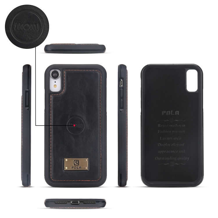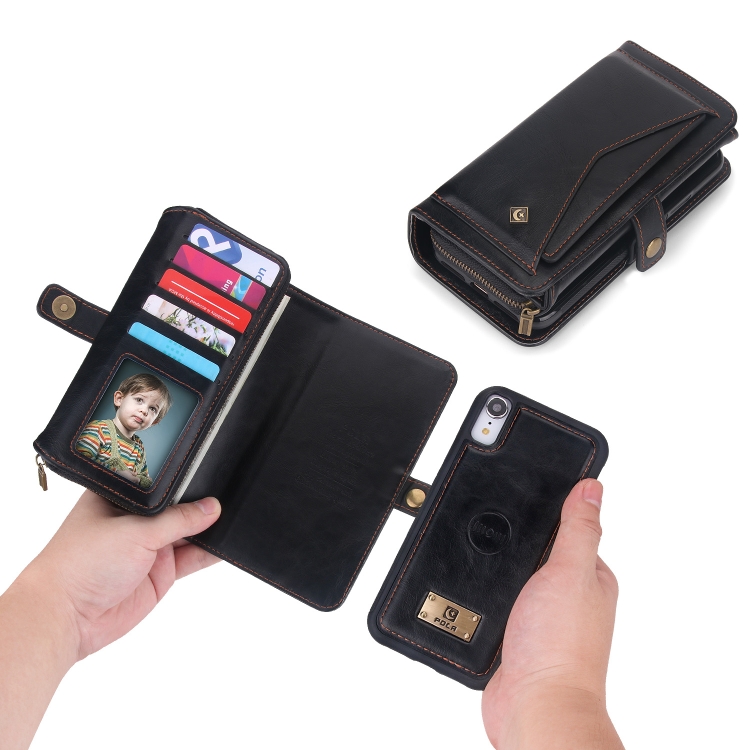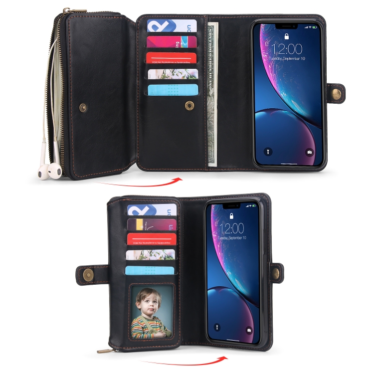 Funda de Cuero para iPhone Xr con Billetera y Cremallera Multifuncional (Negro)