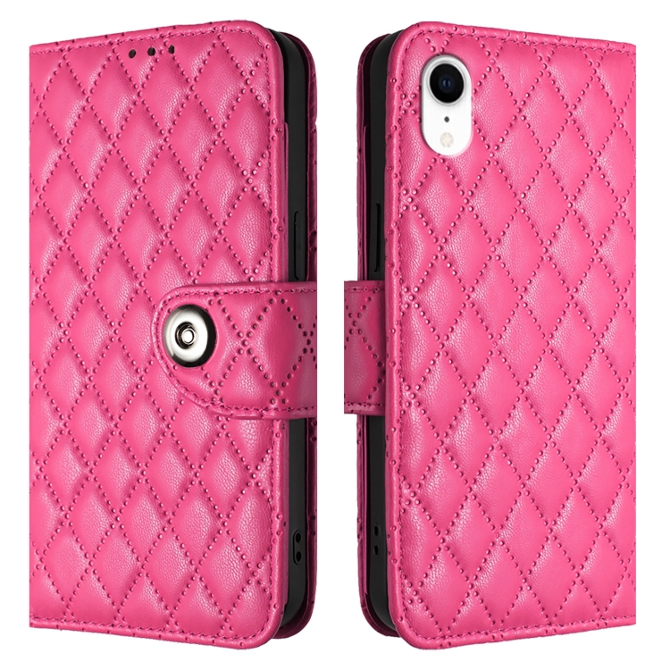 Funda para Teléfono iPhone Xr Cuero con Tapa Textura Rómbica y Cordón (Rojo Rosa)
