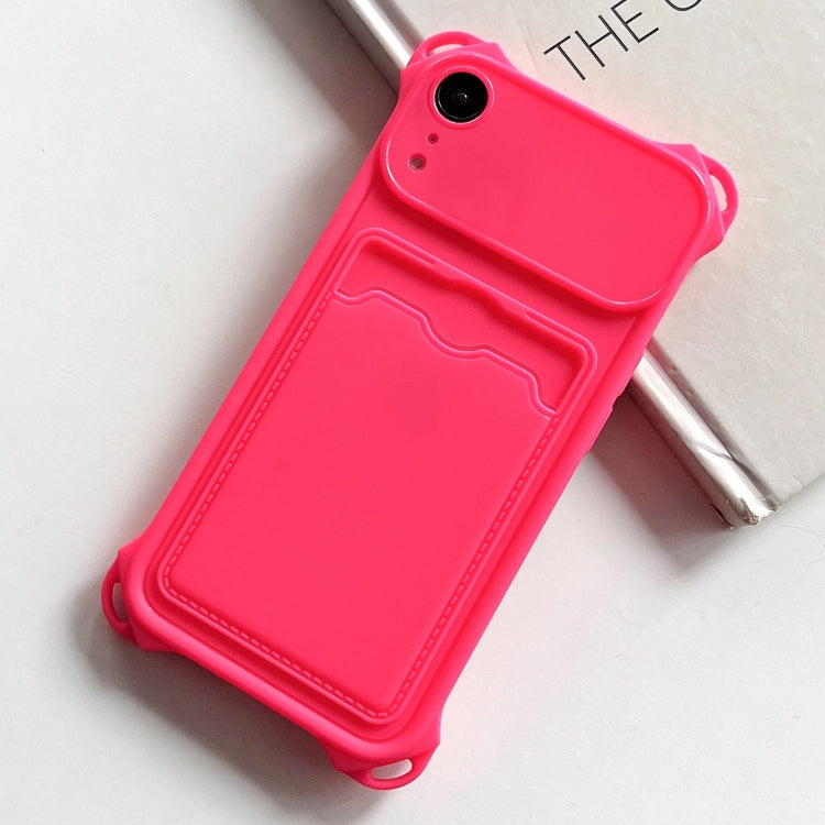 Funda para Teléfono TPU Esmerilado para iPhone Xr con Ranura para Tarjeta y Protección a Prueba de Golpes (Rojo Rosa)