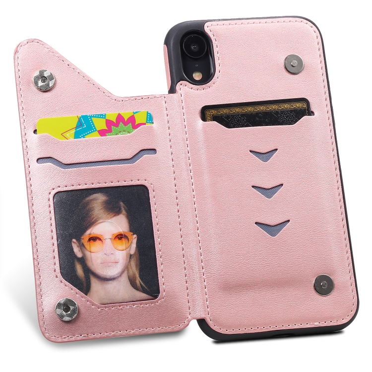 Funda Protectora iPhone Xr Textura Pantorrilla Soporte Ranuras Tarjetas (Oro Rosa)