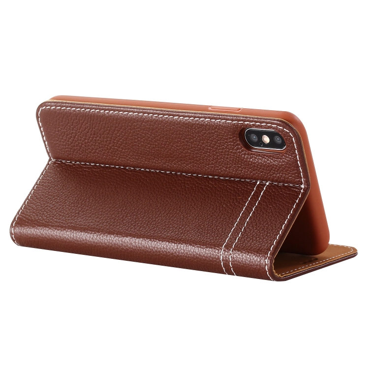 Funda Protectora para iPhone Xr Gebei con Tapa Horizontal de Cuero de Grano Superior Soporte y Ranuras para Tarjetas (Marrón)