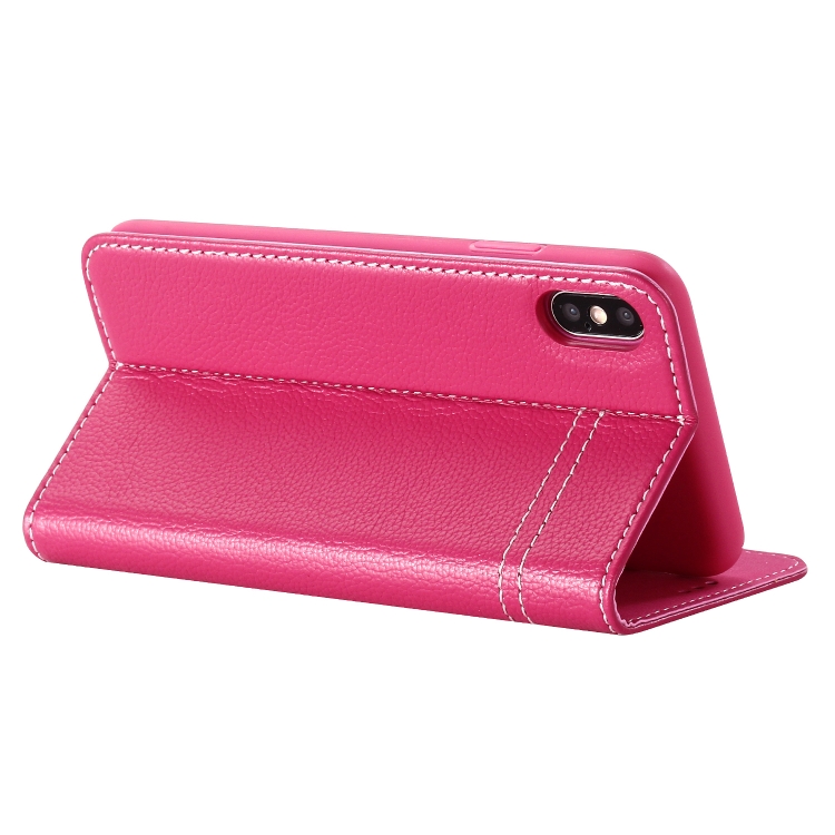Funda Protectora Gebei para iPhone Xr con Tapa Horizontal de Cuero de Grano Superior con Soporte y Ranuras para Tarjetas (Rosa Roja)