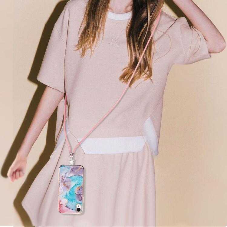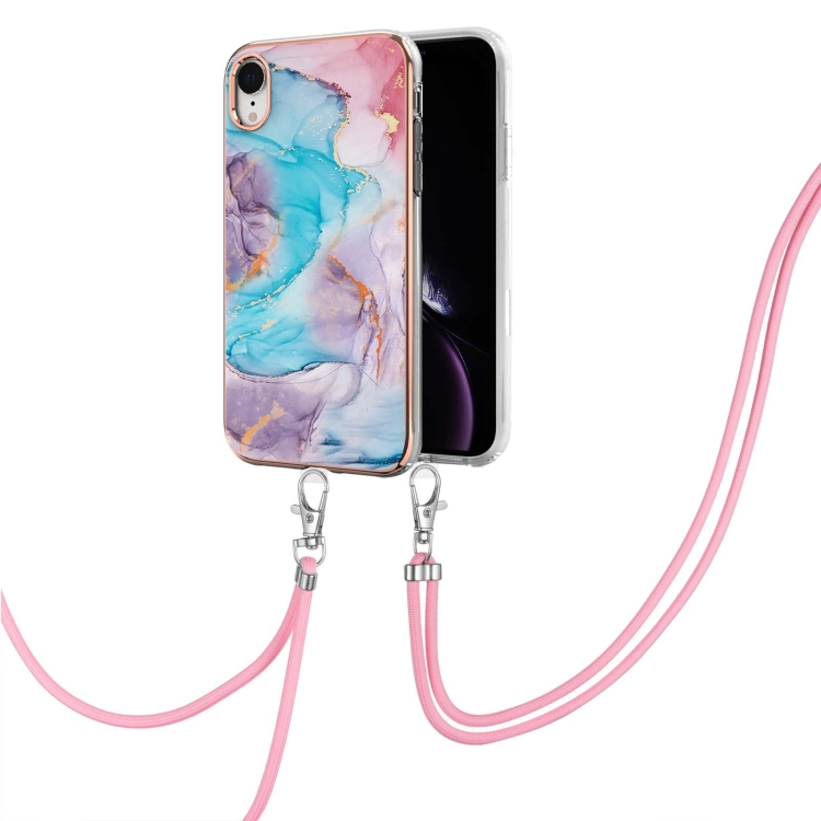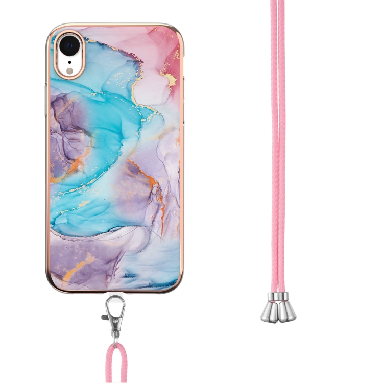Estuche TPU para iPhone Xr Patrón de Galvanoplastia Imd a Prueba de Golpes con Cordón (Mármol Azul de la Vía Láctea)