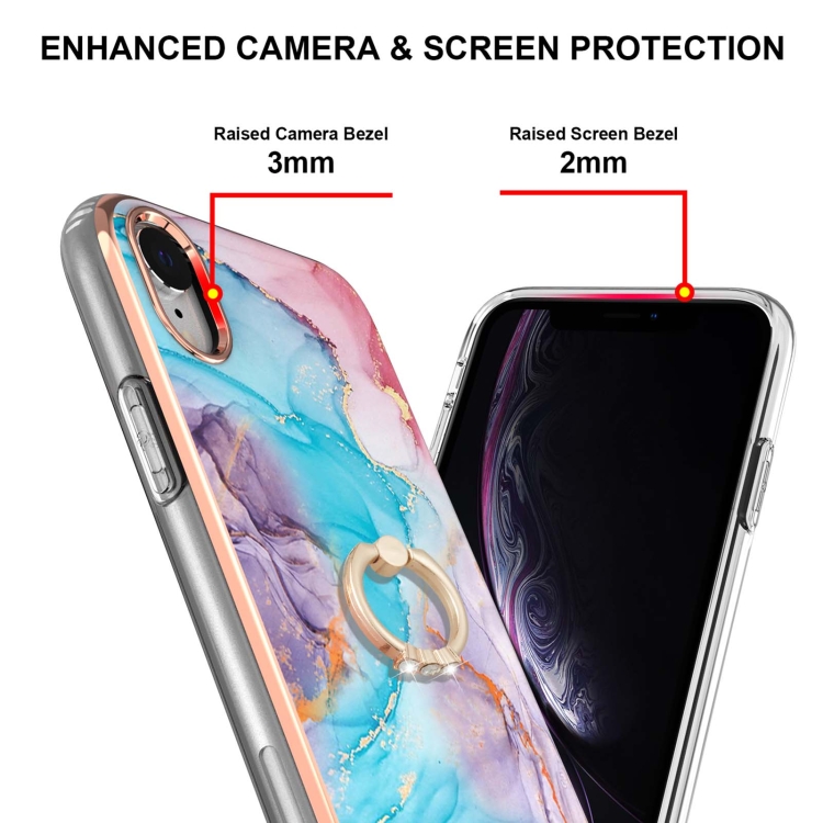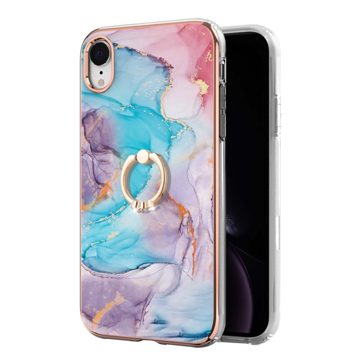 Estuche para iPhone Xr TPU con Patrón de Galvanoplastia Imd a Prueba de Golpes y Soporte para Anillo (Mármol Azul)