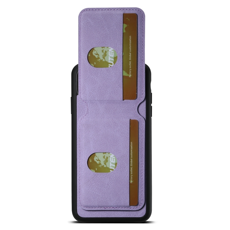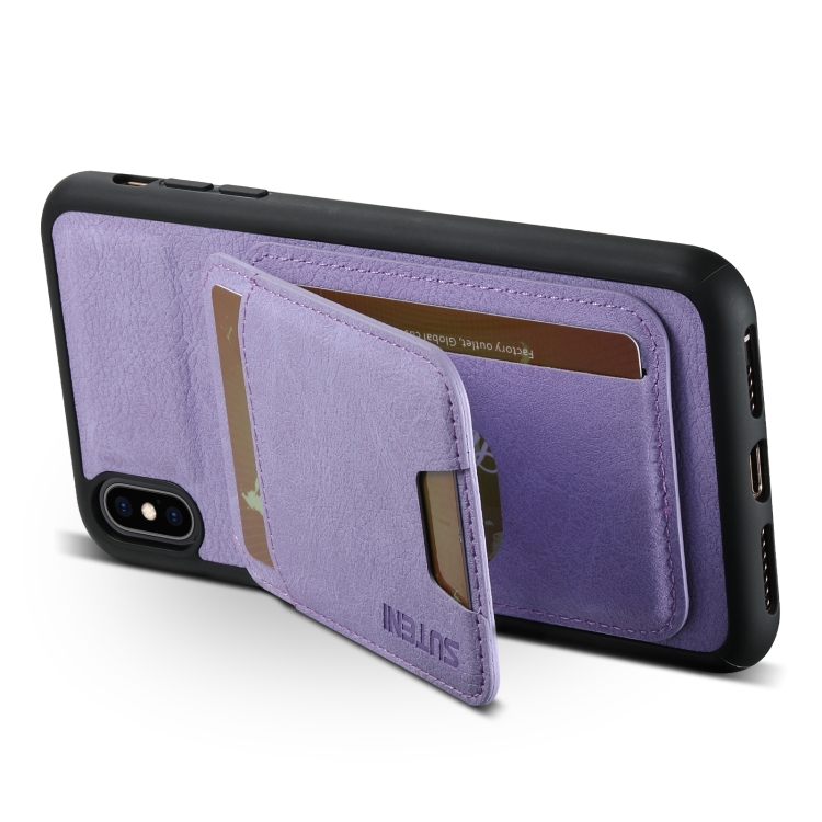 Funda para Teléfono Suteni H02 para iPhone Xr con Soporte y Billetera de Cuero Litchi (Púrpura)