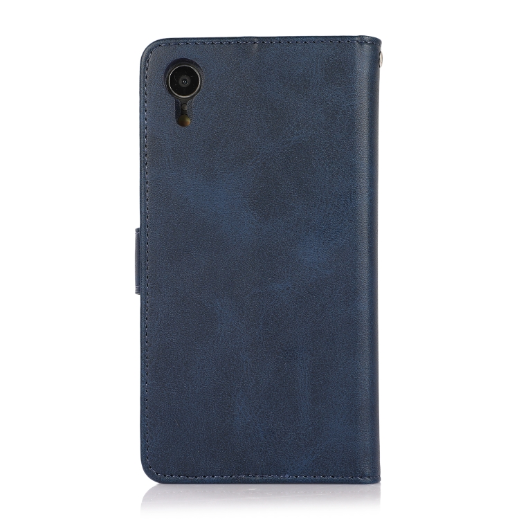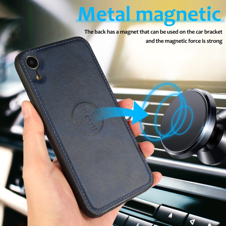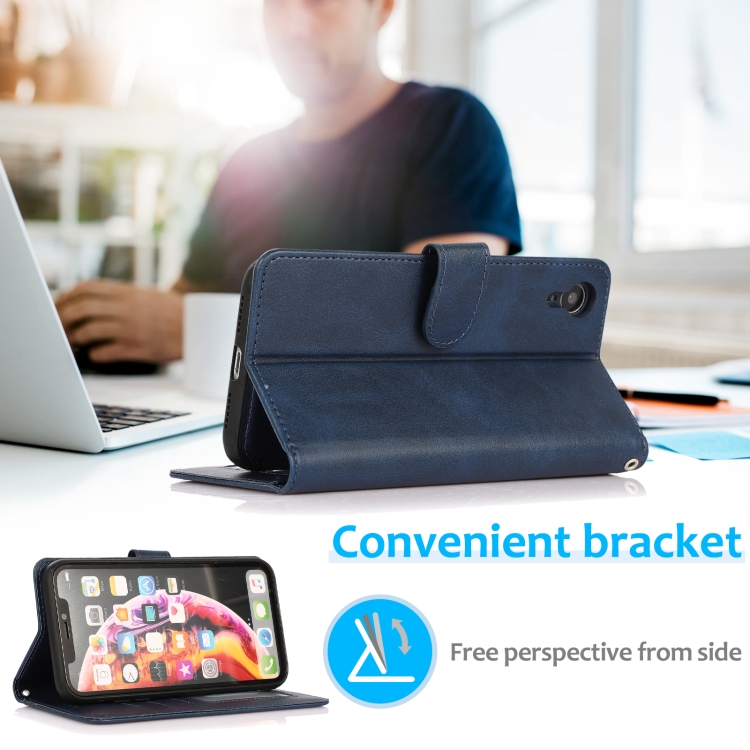 Funda para iPhone Xr Textura de Becerro 2 en 1 Cubierta Trasera Magnética Desmontable Cuero con Tapa Horizontal Soporte Ranuras Tarjetas Billetera Marco Fotos (Azul)