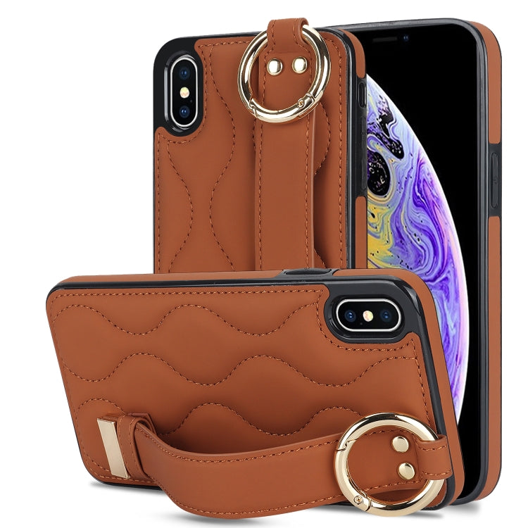 Funda para iPhone Xs Max Antideslizante Cobertura Completa Anillo PU con Muñequera (Marrón)