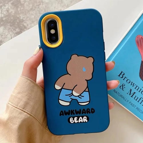 Estuche híbrido para iPhone Xs Max Awkward Bear PC y TPU (Azul Real)
