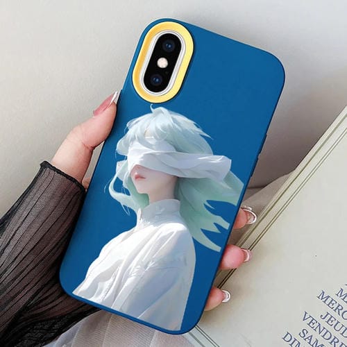 Funda híbrida para teléfono iPhone Xs Max Blindfold Girl PC TPU (Azul Real)