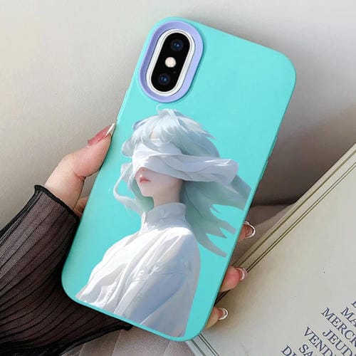 Funda híbrida para iPhone Xs Max Blindfold Girl PC y TPU (Cielo Cian)