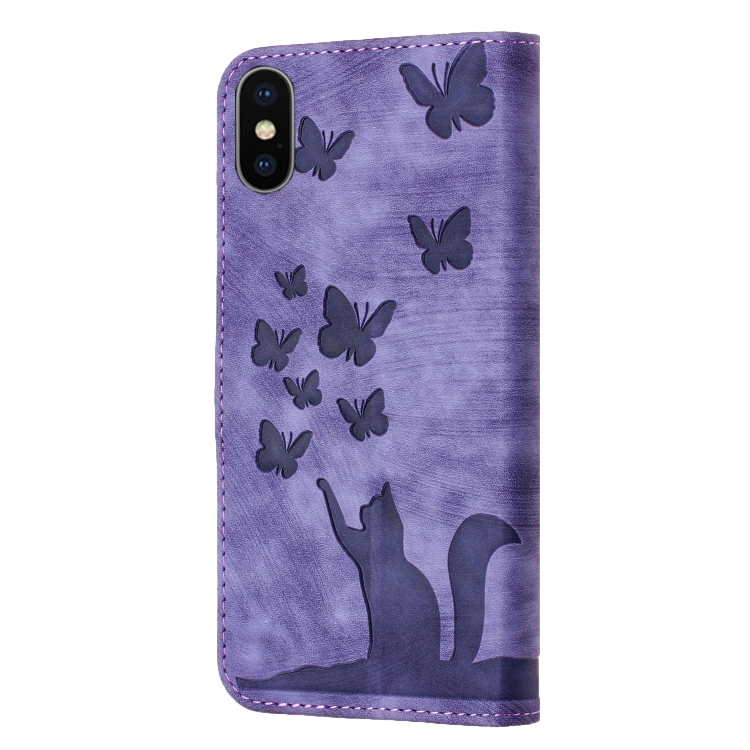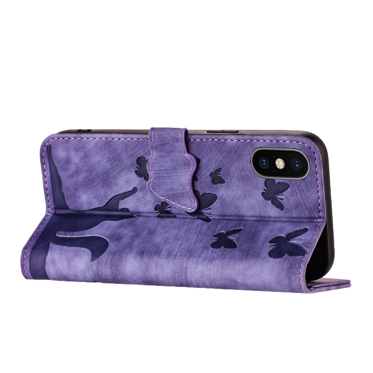 For iPhone XS Max Butterfly Cat Embossed Flip Leather Phone Case(Purple)