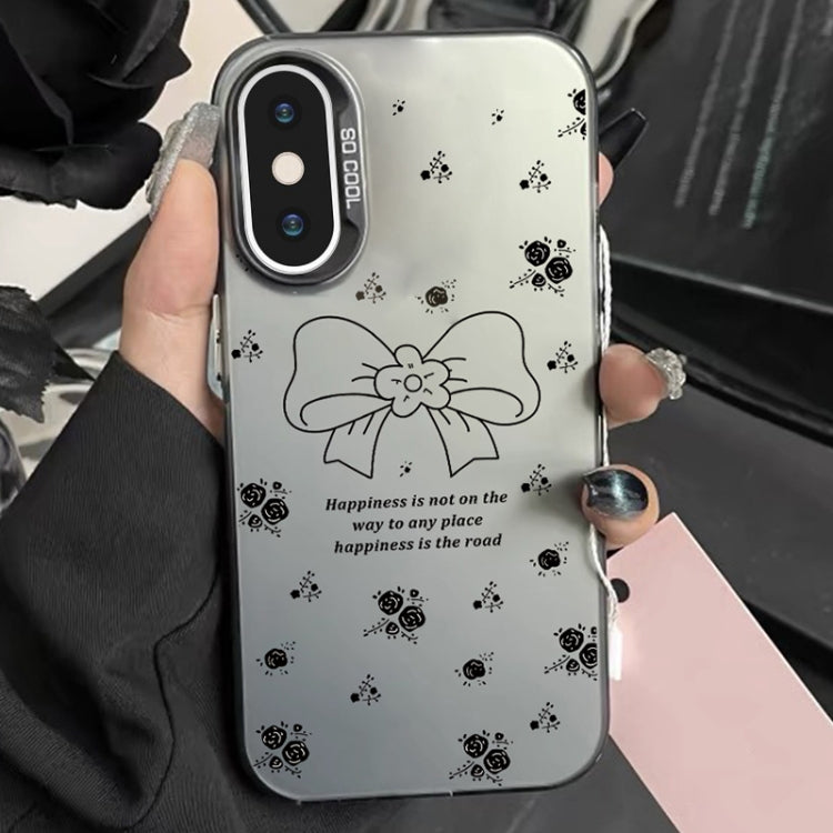 Caja de teléfono híbrida TPU para iPhone Xs Max con pintura plateada (Lazo Floral Negro)