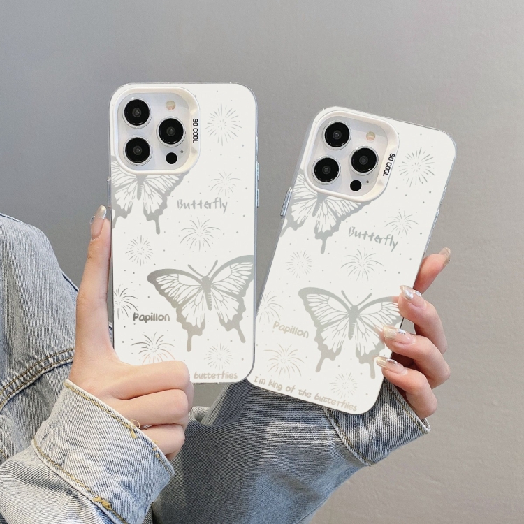 Caja de Teléfono Híbrida TPU PC para iPhone Xs Max con Pintura Plateada (Mariposa Hueca Blanca)